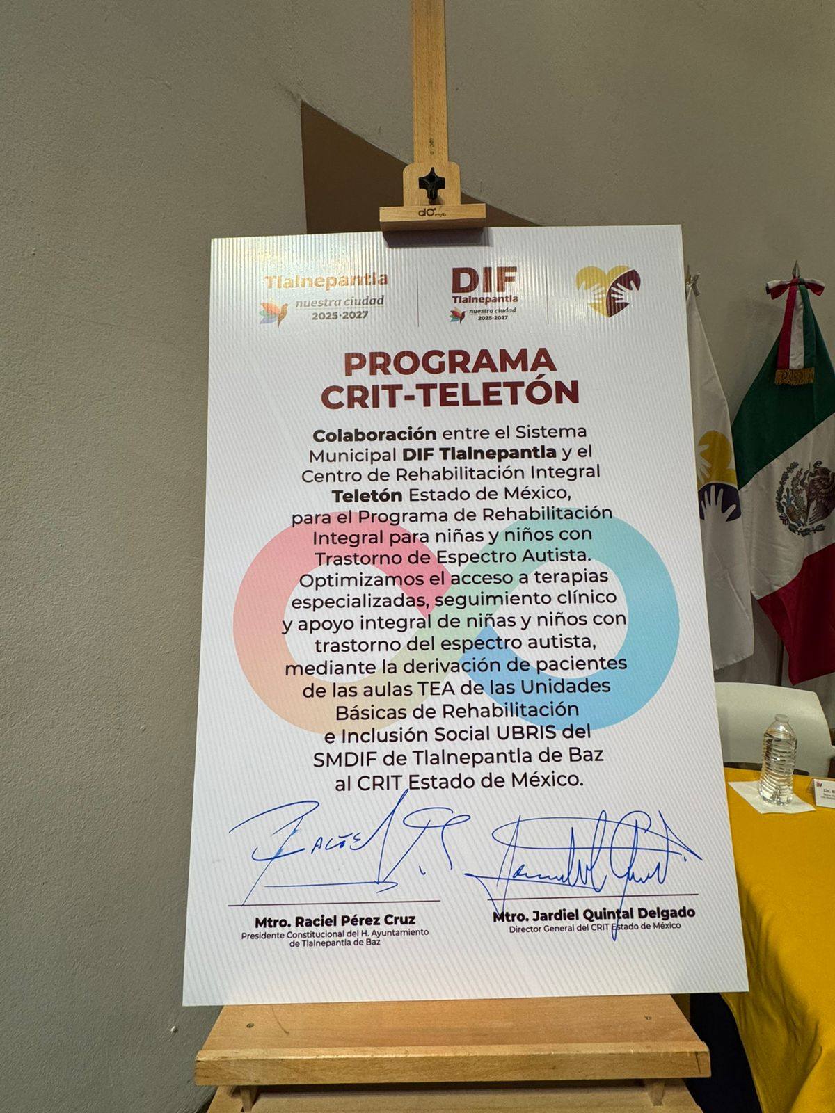 El SMDIF de Tlalnepantla realizó la firma de convenio con el Centro de Rehabilitación Infantil Teletón (CRIT) Estado de México con la finalidad de potenciar la atención especializada y multidisciplinaria para niñas, niños y adolescentes con Trastorno del Espectro Autista (TEA).