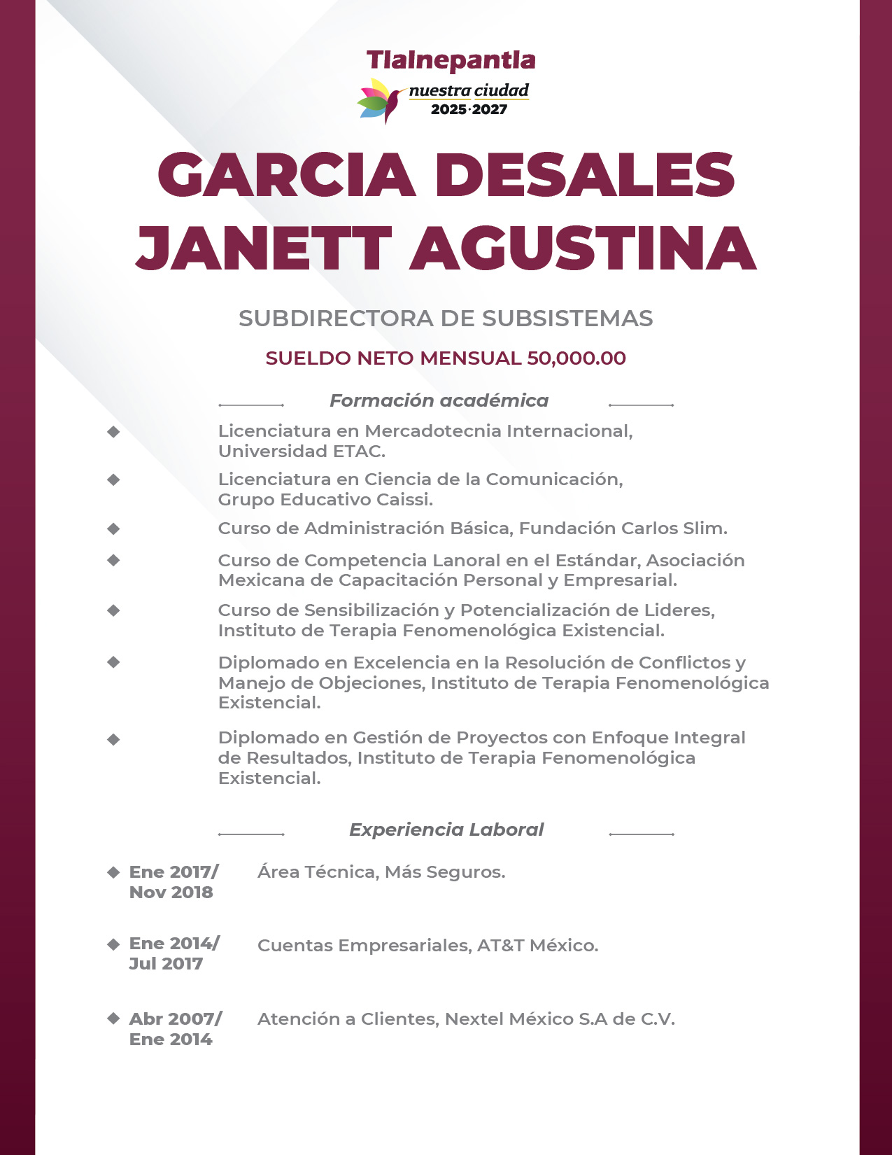 Titular del Subsistema 'Angélica Aragón'